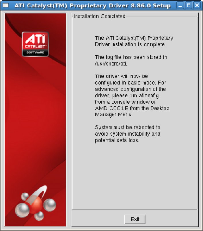 Linux 用「AMD Catalyst proprietary driver」のインストールが完了する。